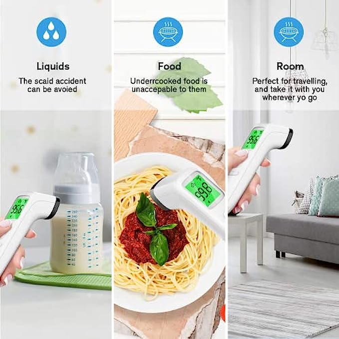 Multi-mode Thermometer: The digital thermometer is designed for all ages, adults, infants, and elders. It not only supports the forehead function but is able to take room/object temperature.