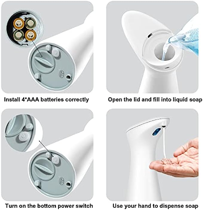 ?【Convenient Operation】Press the ON/OFF key to turn the soap dispenser on or off. Rational liquid inlet makes refilling easy. 6.8oz. small and exquisite liquid soap pump can work with hand sanitizer, shampoo, dish soap, or other liquid soaps. Please feel free to contact us if you have any problem