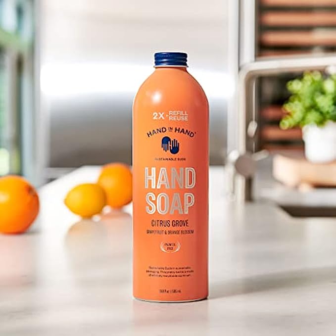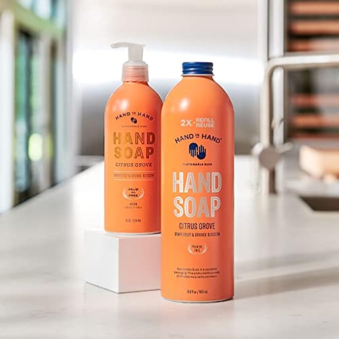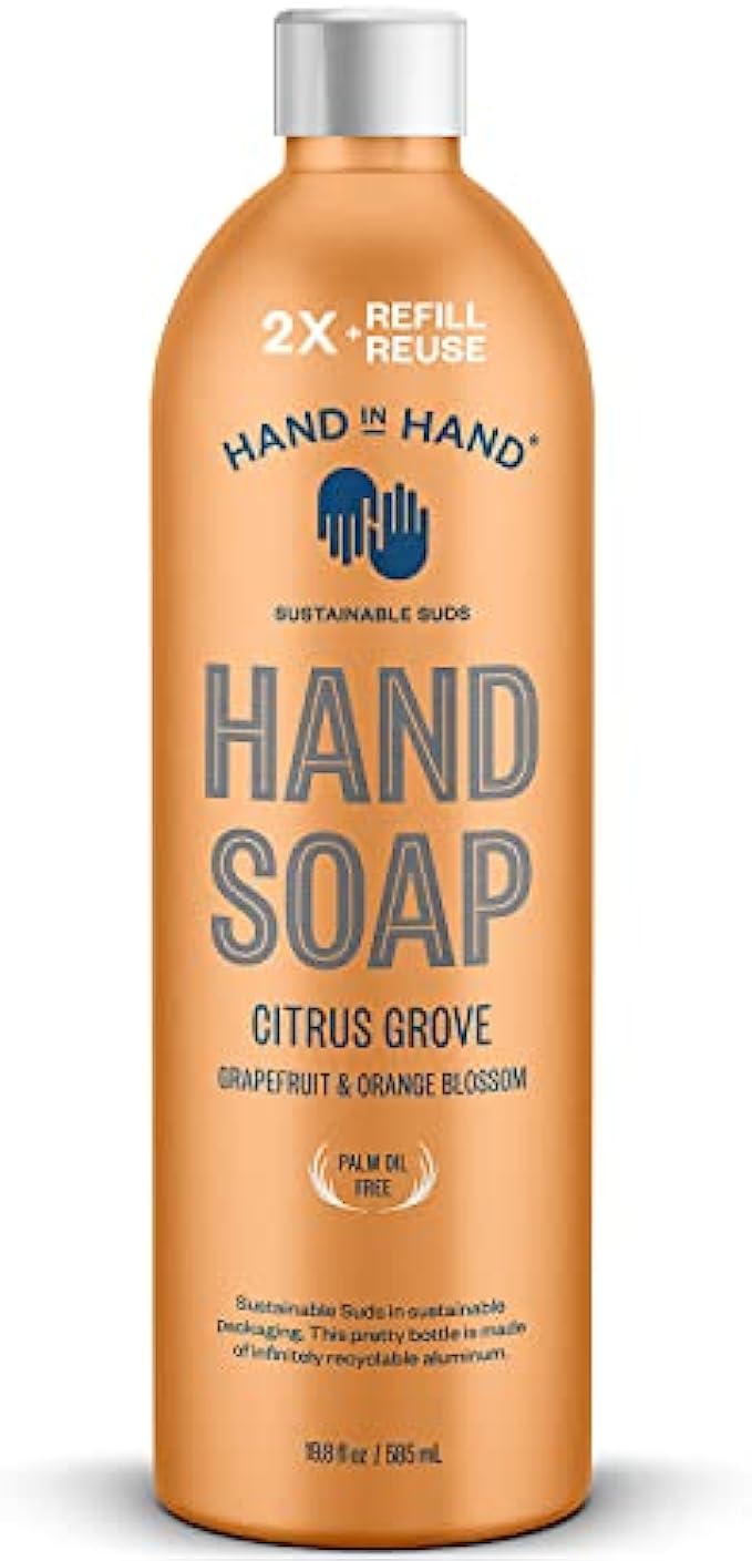 Hand in Hand Nourishing Liquid Hand Soap 19.8 Fl Oz. Refill + 10 Fl Oz. Twin Pack, Grapefruit & Orange Blossom, Citrus Grove Scent