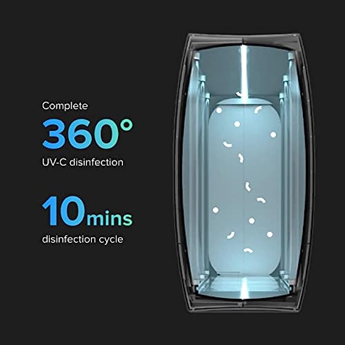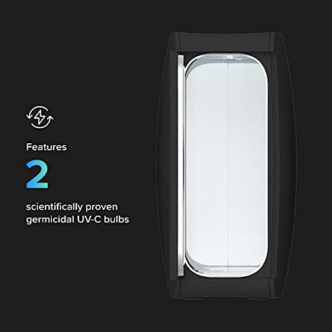 • 360-Degree Disinfection; This powerful UV light sanitizer box disinfects without sprays, solvents, or chemical cleaning agents. With bulbs on both the top and bottom, our UV sterilizer and phone cleaner device achieves 360-degree disinfection, reaching tiny crevices that sprays and wipes cannot.
