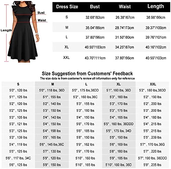 • FLATTERING RUFFLE SLEEVES : The sexy flutter sleeves add some pizzazz and not tight around your arms. Plus there is extra fabric that covers the space between your arm and the ruffle, this makes the dress very classy.【WARM TIPS】This size of vintage dress is smaller, to ensure your experience, pls order one size up.Thank you!