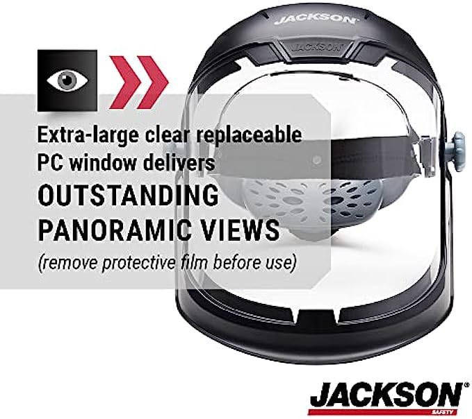 • DESIGN – Premium face shield with a clear tinted, oversized window for unobstructed and panoramic views