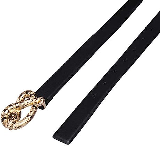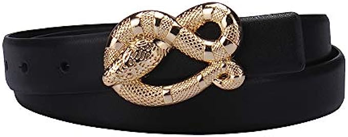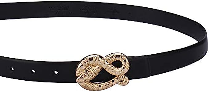 • STYLISH STRAP: This women's belt is made with a 1.5" strap, perfect for cinching around your waist with high waisted jeans or a cute dress, The black or grey faux leather strap will elevate your outfit with its modern exterior, while also matching any ensemble with its universal color, But the strap isn't the only thing that will make your outfit pop