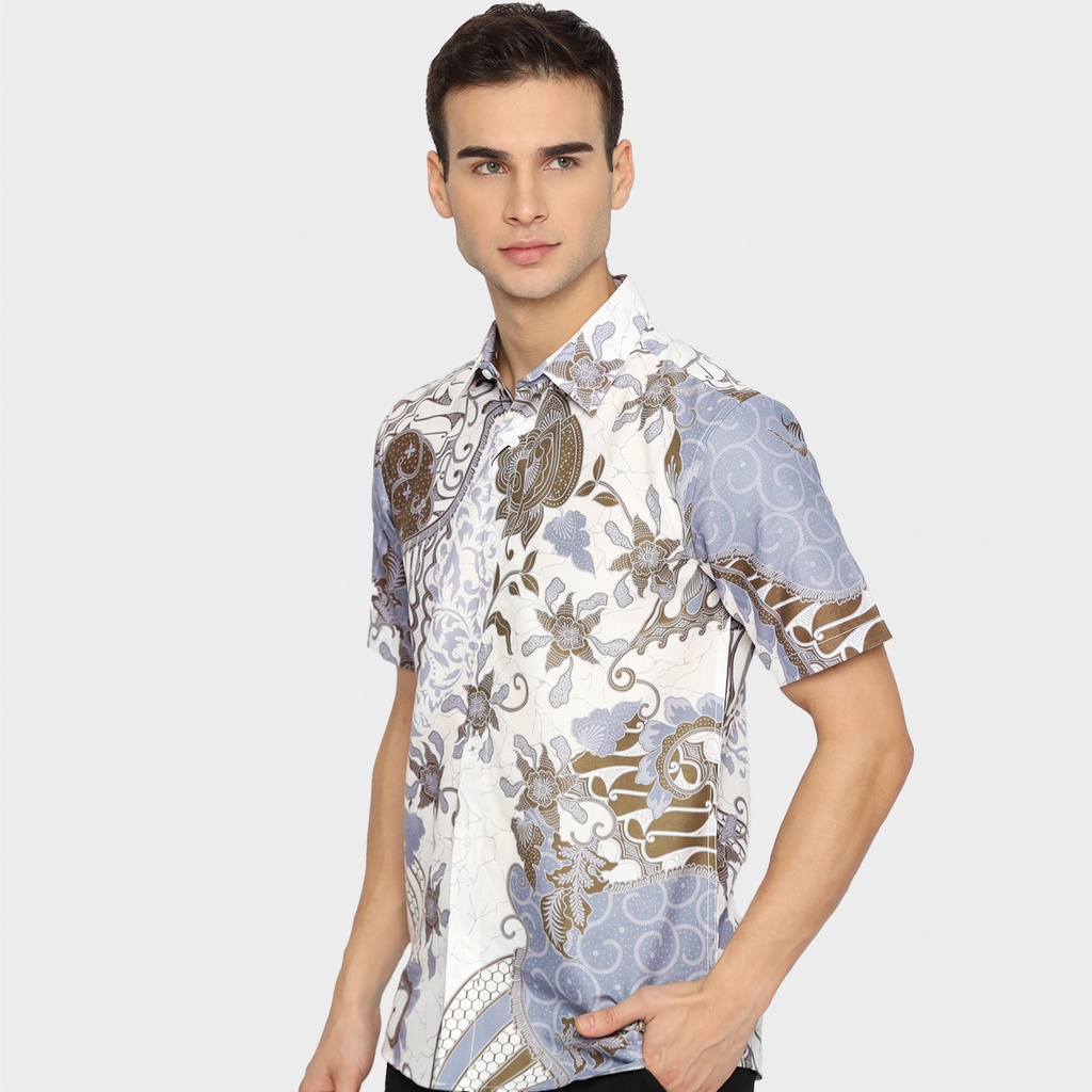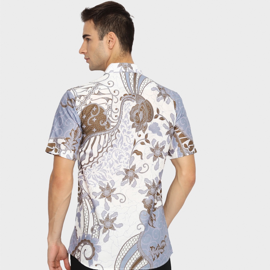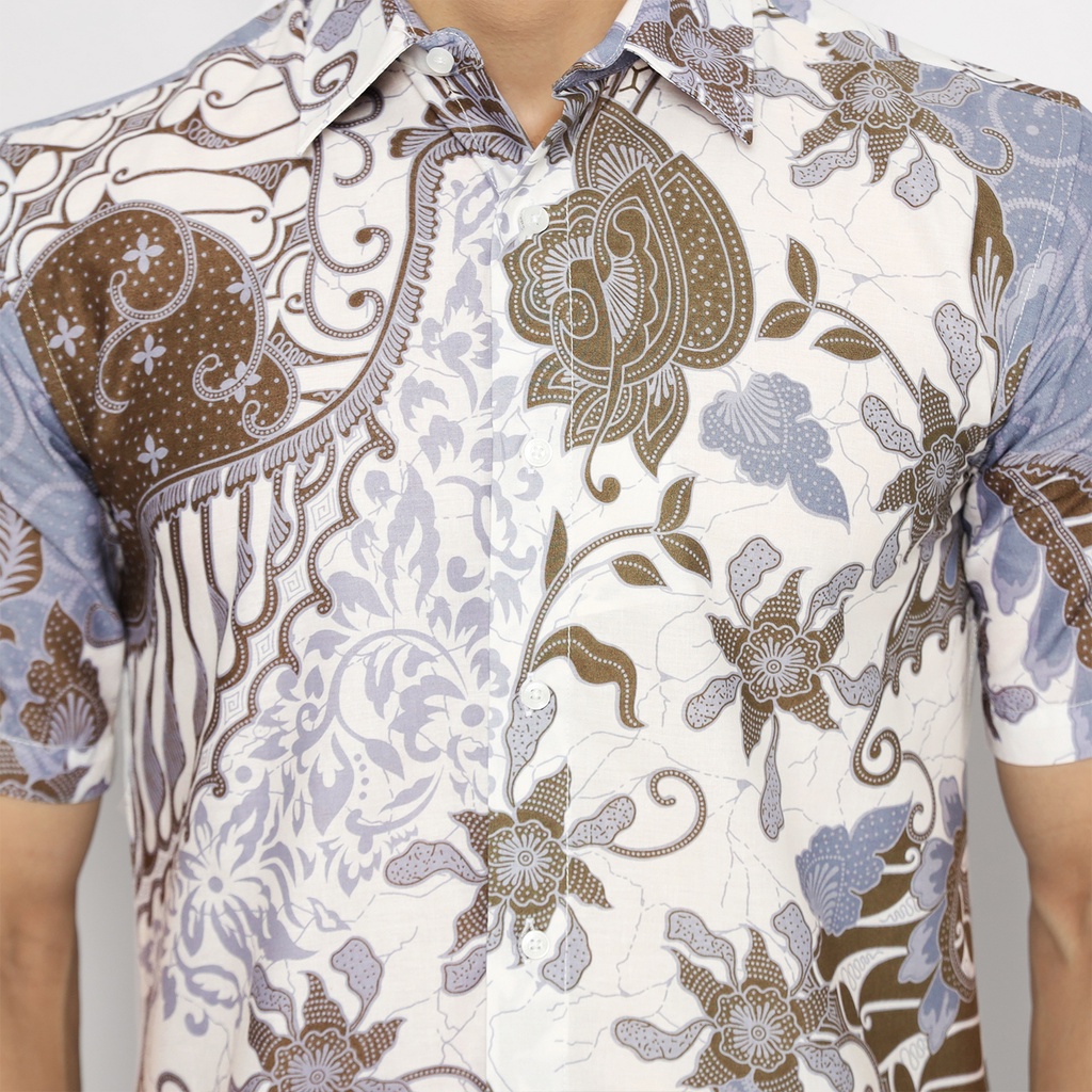 KEMEJA Jayashree Batik Slimfit Askya Brown Men's Batik Shirt Short Sleeve