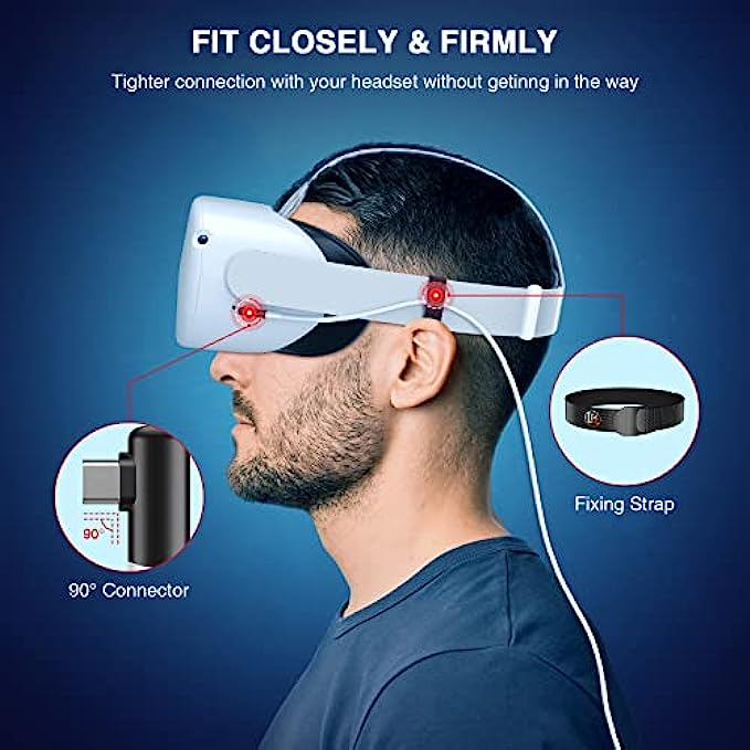 [90° Right Angled Design]: LK Quest link cable with a 90° connector design fits closely to the side of the headset, making it less noticeable and less likely to be pulled out by accident. 5,000+ bend tests on the connector ensure its fantastic durability and long-lasting performance.