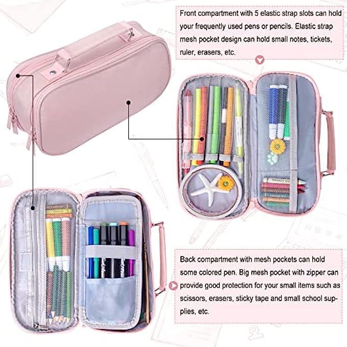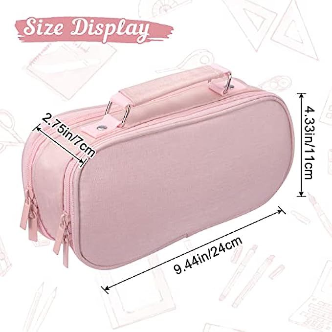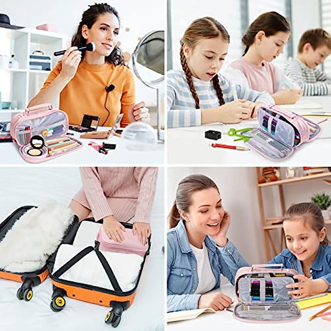 Multiple Usage:The pink pencil case is suitable for women, girls, and kids. Easy to use, not only can cute school supplies be used as a pencil bag, but also can be used as a cosmetic bag, makeup cup, make up brushes holder, stationery storage bag, coin purse, office use etc. Convenient for small or big items, the zipper stationery can prevent items falling out.