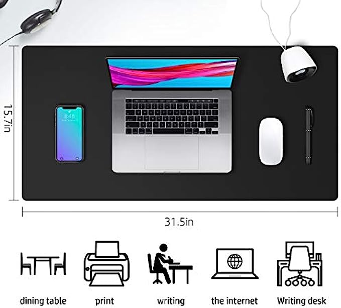 MULTIFUNCTIONAL DESK PAD:31.5 x 15.7 Inch Size is large enough to accommodate your laptop, mouse and keyboard. Its comfortable and smooth surface can be work as a mouse pad, desk mat, desk blotters and writing pad.