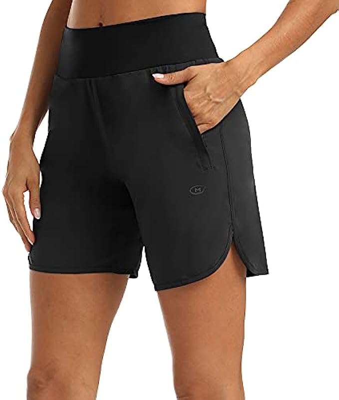 M MAROAUT Womens 4 Inches Running Shorts with Zipper Pockets Liner Black Athletic Shorts Quick Dry Workout Gym Walking