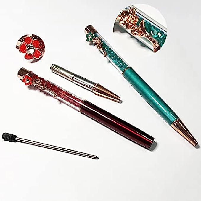 the floral pen is with a bling dimond on the top of it ,it is cute and fancy pens