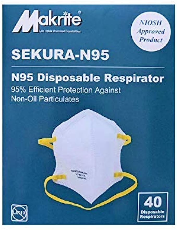 USE FOR—Medical Setting Personal Protection, Construction, Home Improvement, Cleaning, Mowing, Gardening, and DIY Projects; 40-PACK of M/L Size Individual Makrite SEKURA-N95 Respirator Masks