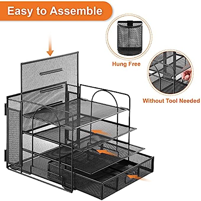 【Easy to Assemble】Screw-Free installation design makes the paper letter tray super easy to install without other tools. Installation can be completed in minutes!