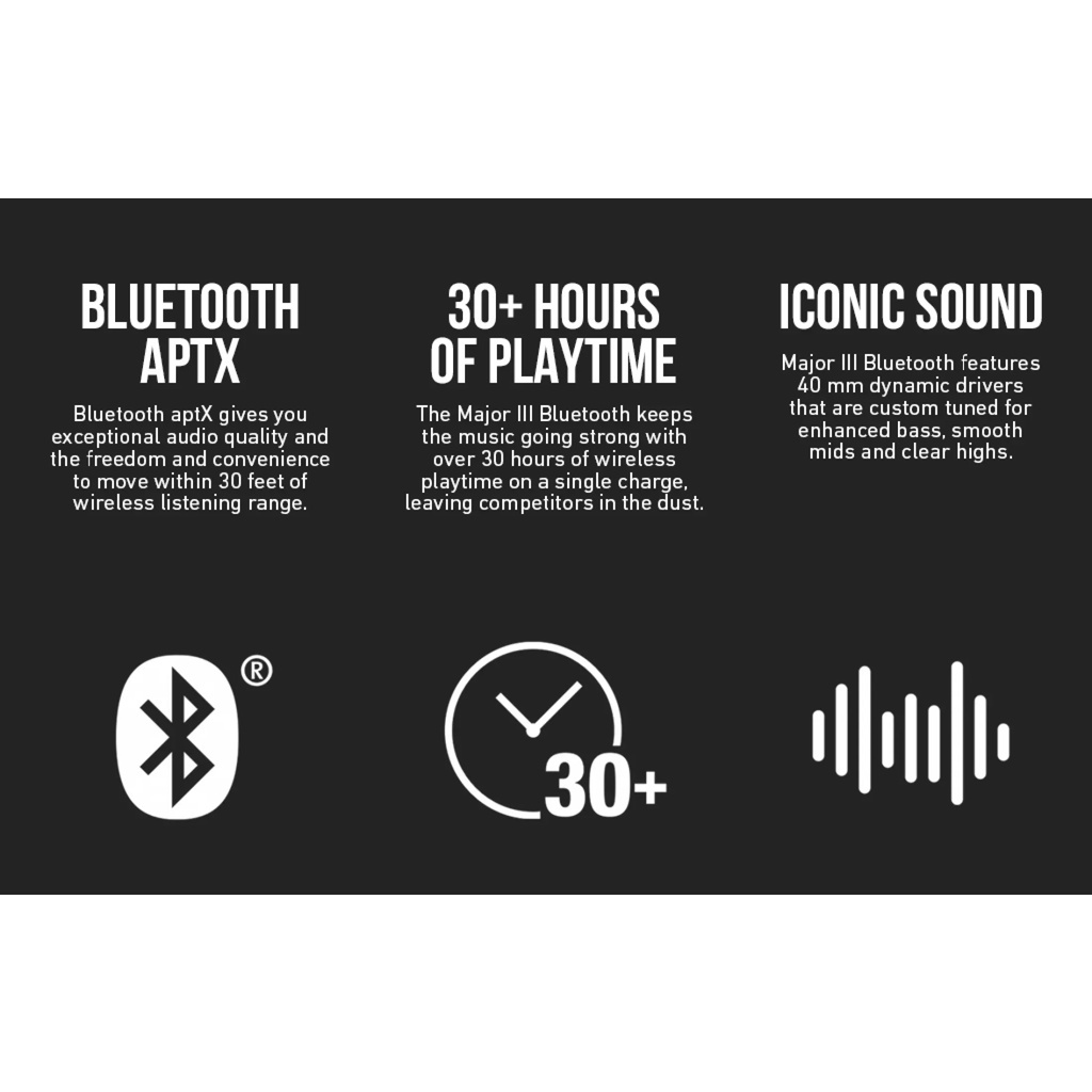 Marshall Major 3 III Wireless Bluetooth On Ear Headphones with Mic Headset Deep Bass Headsets