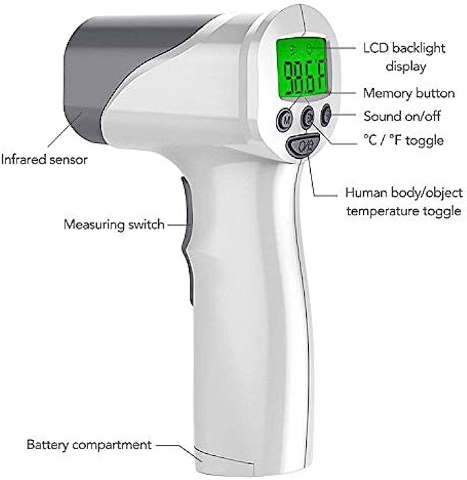 Feature Rich: Easy to use features include a 30 second auto power off function to save power, memory storage function to save up to 32 measurements for quick access, a switch between measuring object or body temperatures, a sound toggle and a fever alert system.