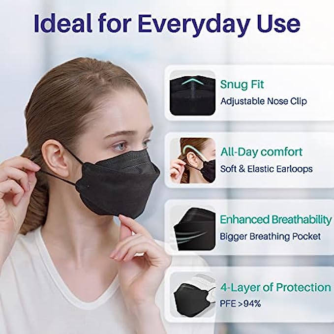 【Breathability & Great Protection】KF94 is made of skin-friendly non-woven fabric with excellent breathability, making it comfortable to wear and exhale. Meanwhile, it protects your breathing with high filtration efficiency (PFE ≥ 94%).