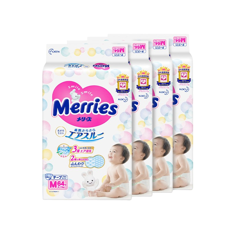 Merries Tape Diapers M64s x 4 packs (6 - 11 kg)