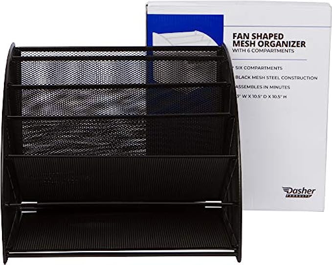 Mesh Office Organizer for Desk - Fan Shaped Desktop Organizer with 6 Compartments for Filing Paper, Bills, Letters. Desk File Organizer for Work, School, Office, Waiting Room, Classroom, and More