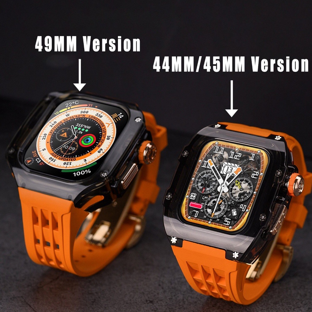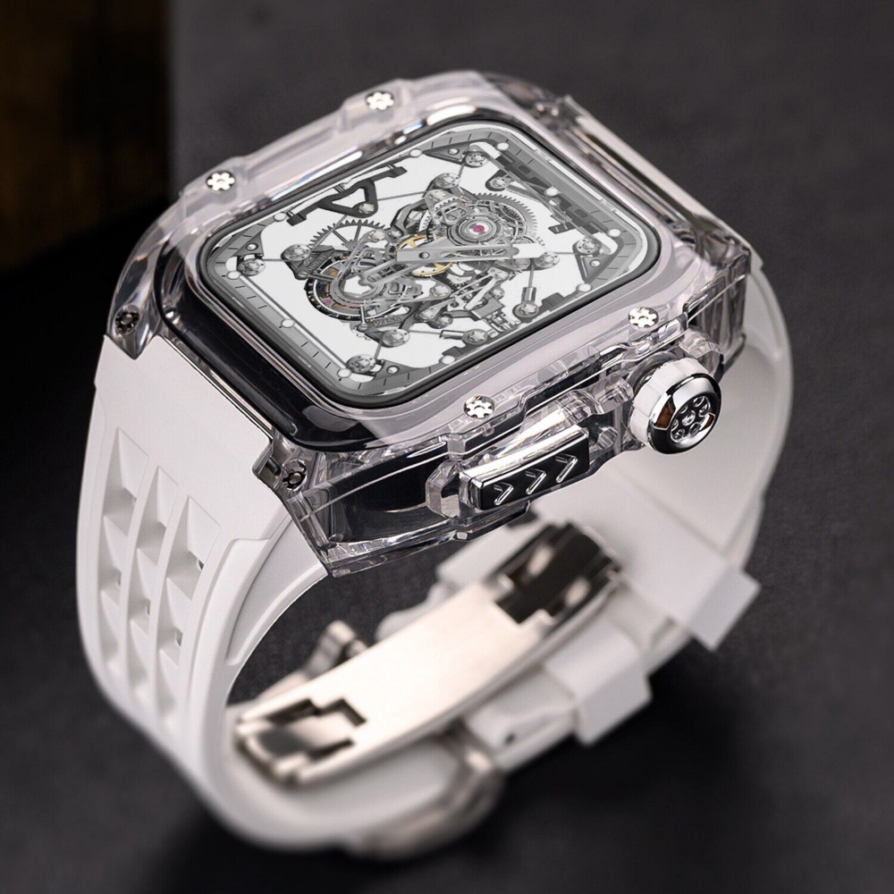 Mod Kit Fluororubber Luxury Transparent Case strap for Apple Watch Ultra 49mm 45mm 44mm I Watch Series 8 7 6 5 4 SE