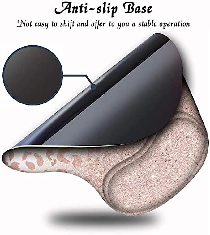 Mouse Pad with Wrist Support, Ergonomic Mousepad Non-Slip Base for Office Supplies Cute Desk Décor Accessories, Small Mouse Pads for Women Men Girls Rose Gold Leopard Cheetah