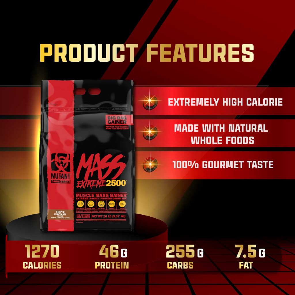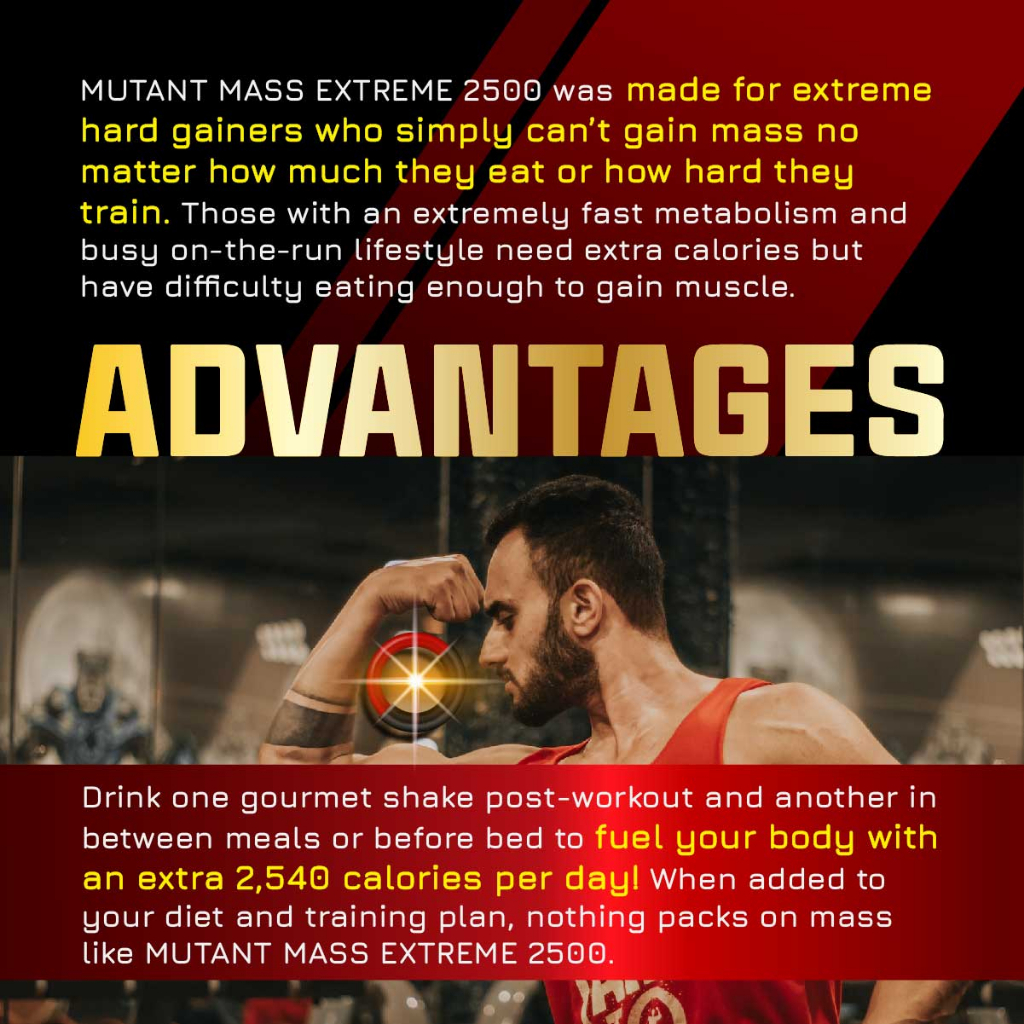 Mutant MASS EXTREME 2500, Muscle Mass Gainer, Whey Protein with high calories for extreme hard gainer, 6-12-20 lbs