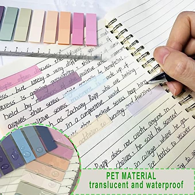 TRANSLUCENT & WATERPROOF:Index tabs are made of PET, translucent and waterproof. Transparent degin to meet the need for note-taking and help you easily annotate on the page without obscuring the important message.