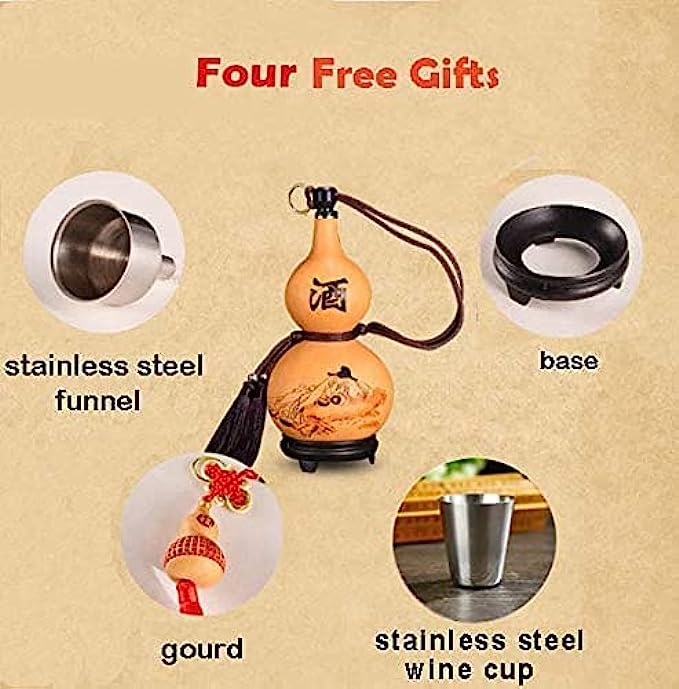 The shape is a gourd shape, which can hold both wine and water(only cold drinks / no hot drinks). At the same time, it can also be used as a pendant.