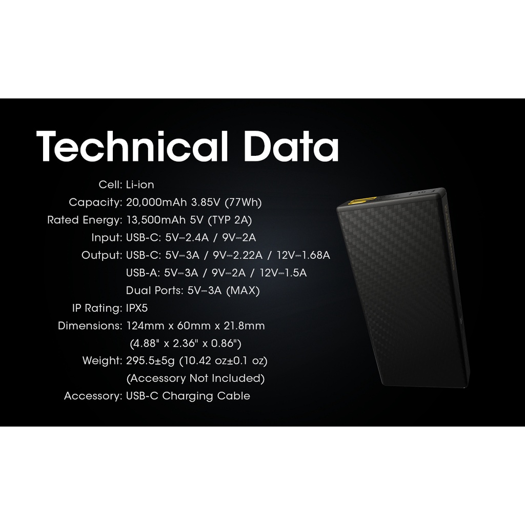 Nitecore Carbo 20000 Lightweight 20000mAh Power Bank 20w Quick Charge Waterproof