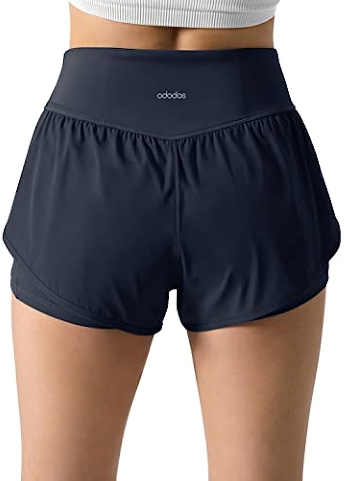 ODODOS Women's 2 in 1 Running Shorts with Pockets Workout Gym Sport Layer Active Shorts