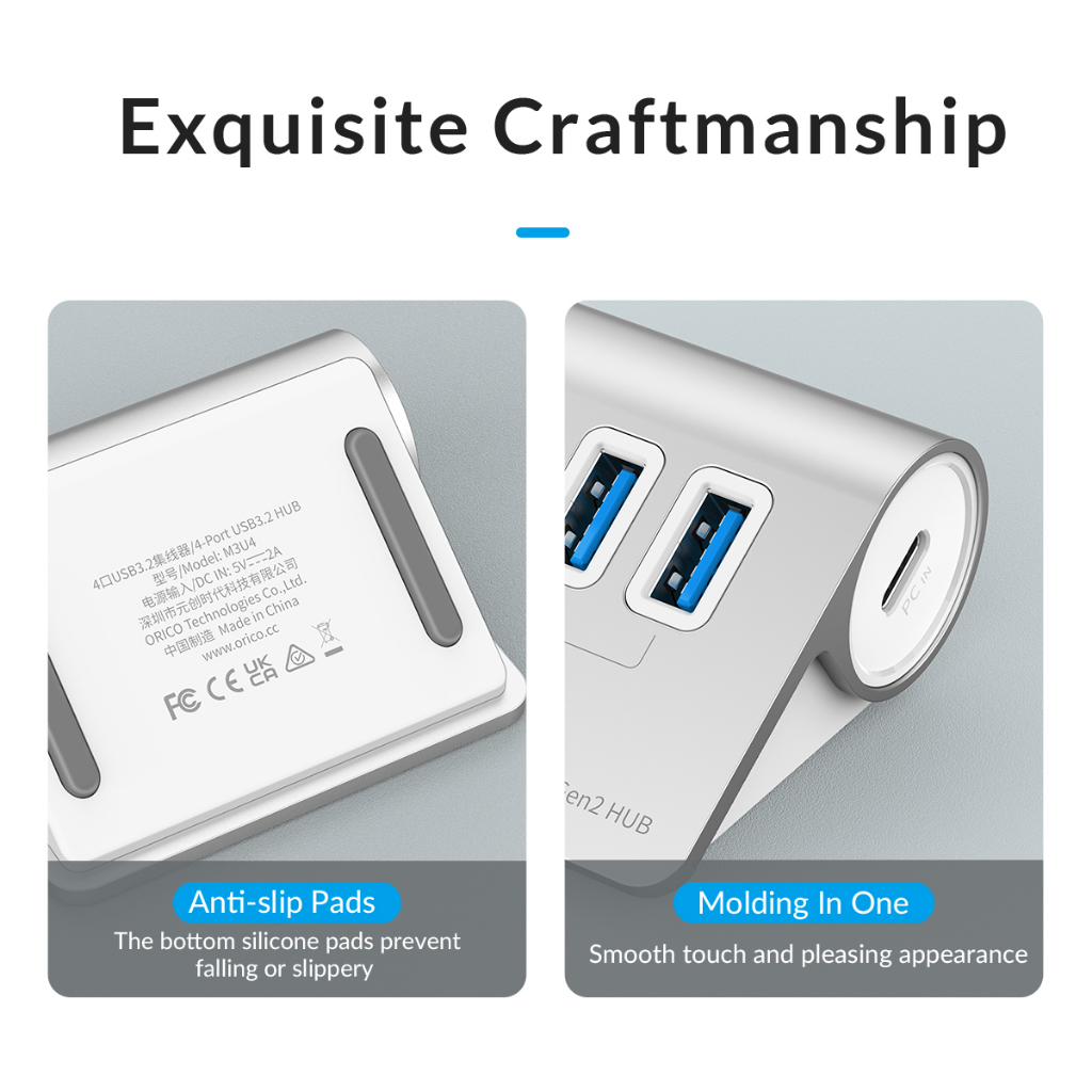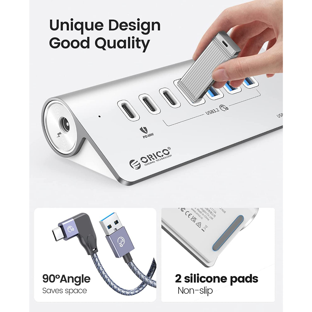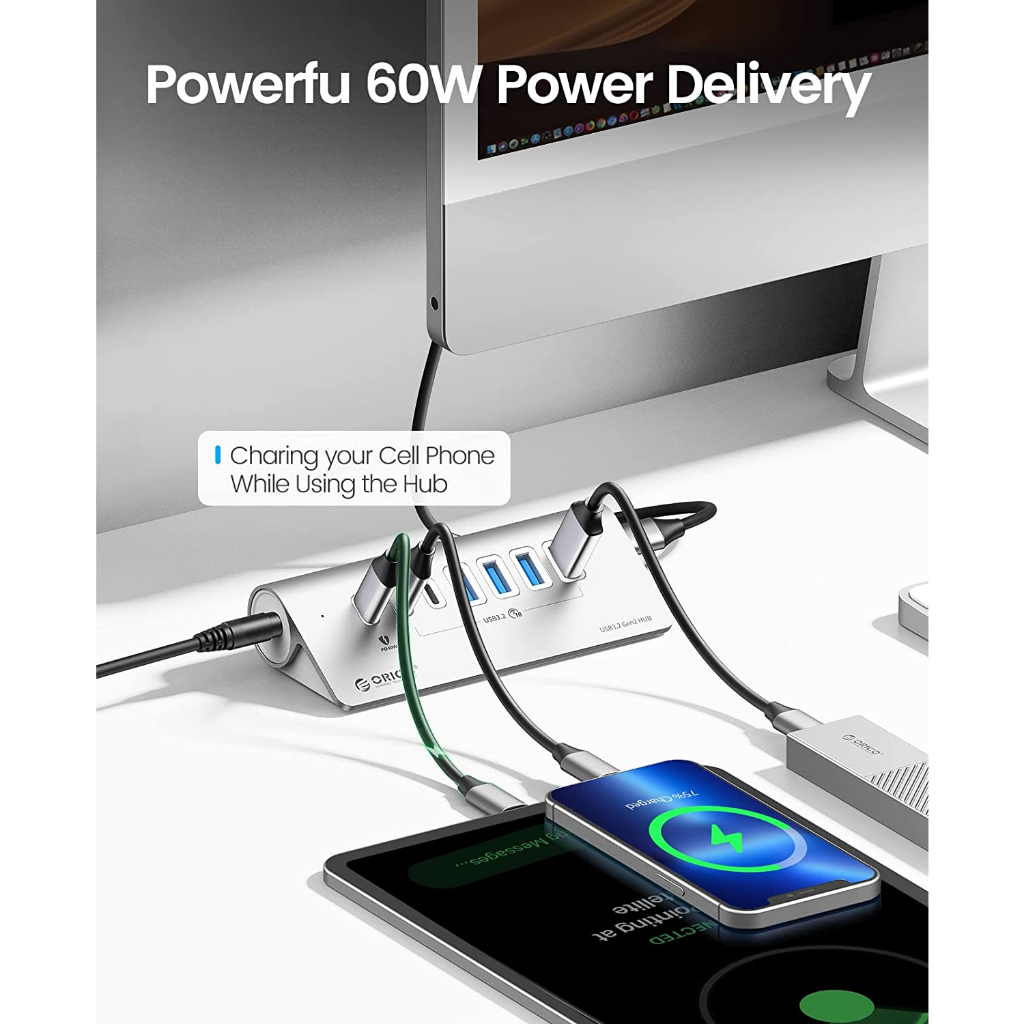ORICO USB C Hub 10Gbps USB 3.2 Gen 2 Hub with 2 USB A Port 2 USB C Port Aliuminum USB Splitter with USB A Adapter Type C Power Supply Port for MacBook/ MacBook Pro