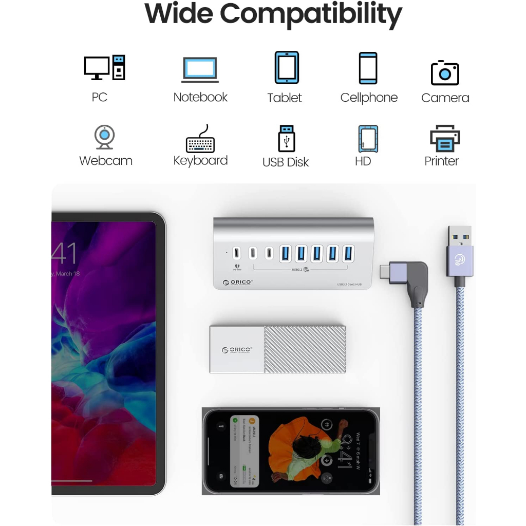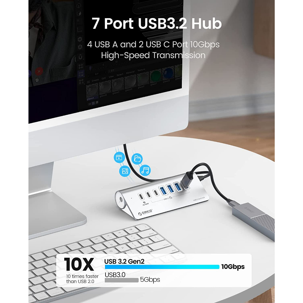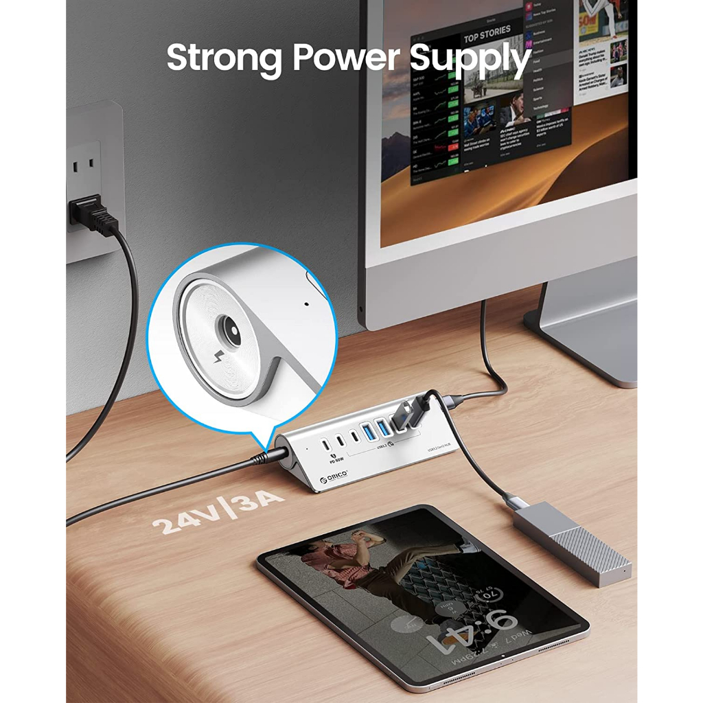ORICO USB C Hub 10Gbps USB 3.2 Gen 2 Hub with 2 USB A Port 2 USB C Port Aliuminum USB Splitter with USB A Adapter Type C Power Supply Port for MacBook/ MacBook Pro