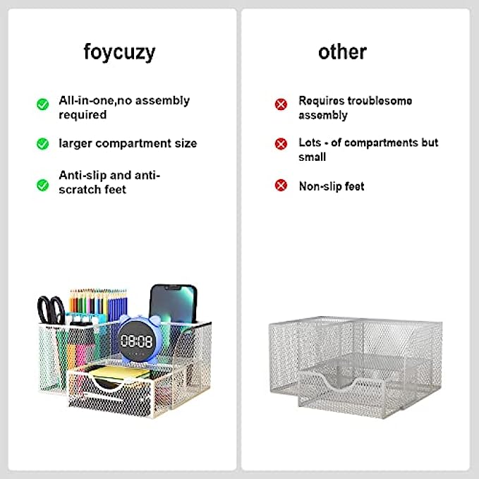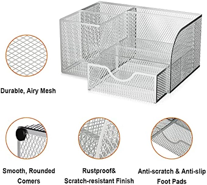 【STYLISH MESH DESK ORGANIZER DESIGN】We use superior modern technology to make the construction of office supplies desk organizers much sturdier and more durable. The reliable, high-quality metal mesh design looks more elegant than other mesh or plastic office supplies organizers. There are four non-slip pads on the bottom of the office organizer to protect your desk from scratches