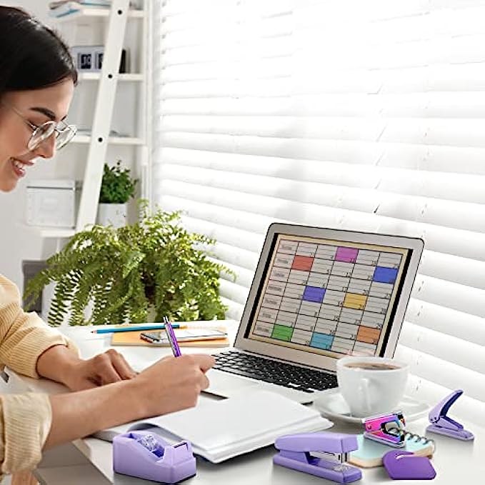 Cute Purple Appearance: the women office supplies set is designed with bright and attractive purple color, giving you a visual impact, elegant and beautiful, making your desk clean and bright, and relax your mood; Suitable as a stylish gift for friends or colleagues