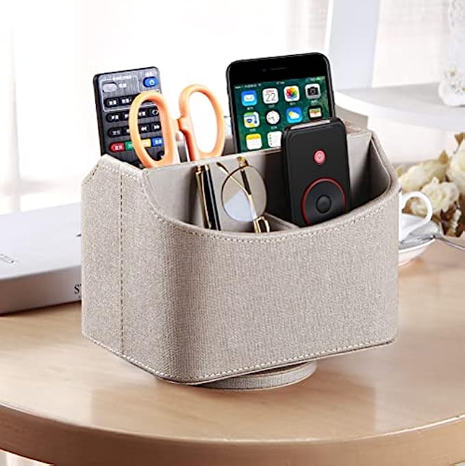 360°ROTATABLE REMOTE CADDY: our remote control storage comes with an easy-to-spin 360° rotating base, providing you easy access to put or take items, whether you place it on the couch, armchair,table, or anywhere around your house or apartment;