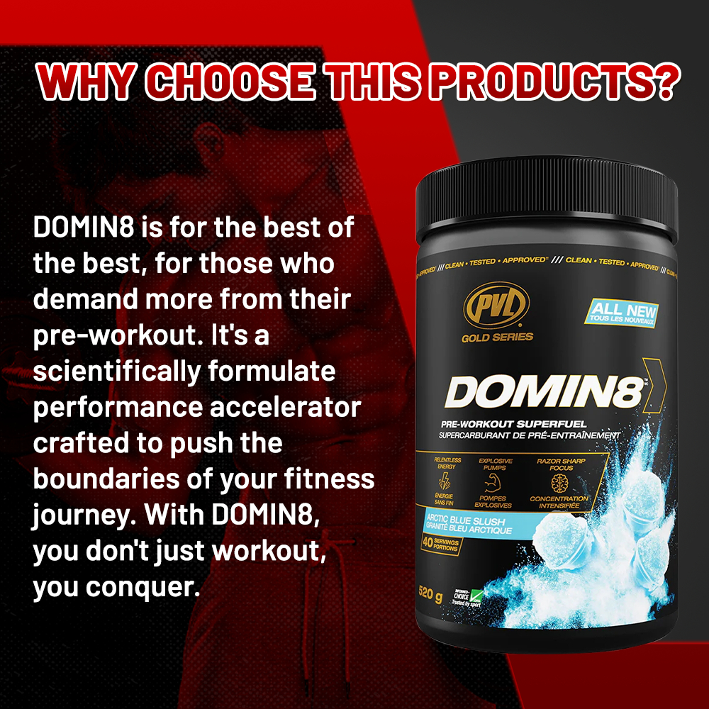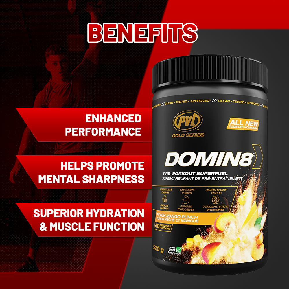 PVL Gold Series Domin8, Pre Workout, L-Citrulline, Boost Energy, Enhance Performance, Increase Strength & Power, 520g
