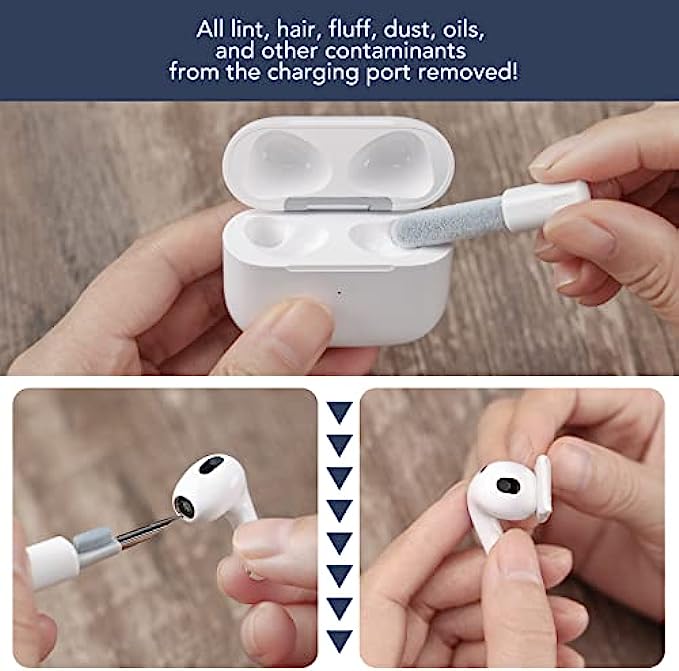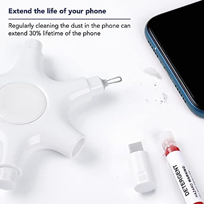 【Clean & Repair Charging Port】The port hook, steel U brush and port wipe in this cleaning kit for iphone can clean the stains, hair, fluff, rust, oils and other contaminants out from your charging port. Cleaning tools can protect the connectors of cell phone devices, thoroughly clean the charger port of mobile phone. Keep your cell phone looking new and shiny. Multi-tool is the perfect solution to keep your phone, earphones, and other accessories clean and extend the lifetime. 【Fix Unreliable Charging and Poor Connection】Do you have any trouble when charging? The cleaning kit helps repair intermittent charging, charging slow, oxide damage on connectors. Through cleaning, restoring damaged ports and charging cables, unreliable connections can be eliminated. Our phone cleaning kit can extend and protect the service life of your devices. Note: This phone cleaner supports type C port and ports for iphone, cables, but not supports the type C cables. 【Clean Your Earphones】Our multi-functional cleaning kit for airpods can clean the gunk, lint on the Bluetooth earphones case, speakers, switches, tiny gap and the front surface of earphones. The metal pen tip and high-density velvet soft brush are the convenient and effective tools to clean earphones. By improving hygiene condition, audio quality and connectivity, our cleaner kit for airpod can restore your loved devices to a new one. Regular use can keep your electronic product shiny as ever. 【Upgraded Material & Workmanship】Our phone repair kit uses premium silicone and wear-resistant PP material, which is not easy to deform and fall off. Different from others, our main body of the shell adopts ultrasonic workmanship and integrated design, ensures no crack. Easy to insert and out. Don't worry about get stuck or destroy the original design. 【Fidget Toy Gift & What you will get】 You can hear a satisfying “click” sound when insert the tools, which is similar to a stress relief toy. And the earpods cleaner kit can rotate on table. Perfect gift for your friends or families. The package includes 1 x cleaning kit for charging port, 4 x cleaning putty, 1 x cloth and 1 x manual. If you encounter any problems during use, please feel free to contact us. Specific Uses For Product Restore oxide damaged cable contacts, For all Lightning ports & cables, Remove all types of debris Compatible Devices Lightning Ports, IPad, Ligthning Cables, IPhone,Phone, Type C charging port