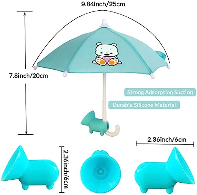 Phone Umbrella for Sun Suction Cup Stand Durable Cell Phone Umbrella Sun Shade with Adjustable Universal Silicone Piggy Suction Cup Stand Anti-Glare Cute Outdoor Phone Sun Shade Holder (Blue-Bear)
