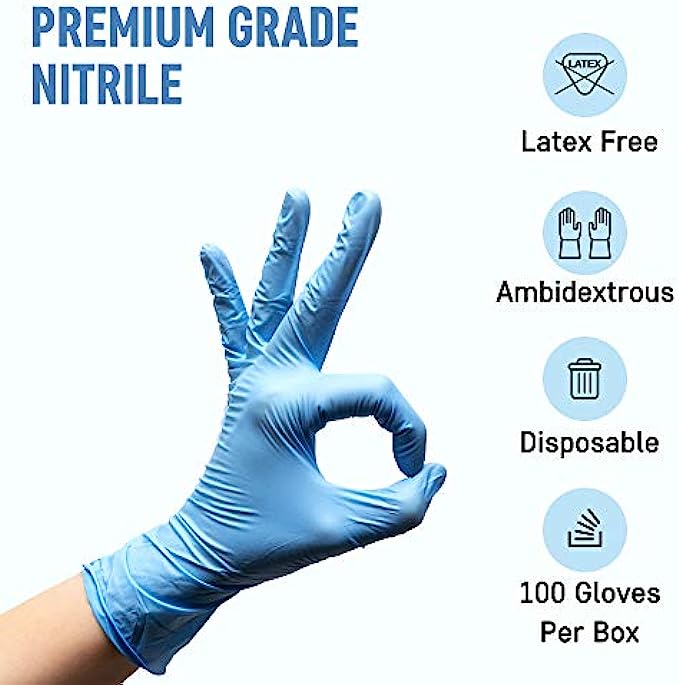 SANITARY GLOVES: Ideal to keep yourself safe and sanitary, these premium disposable gloves are sapphire blue, have beaded cuffs and are ambidextrous. They come 100 to a box, and are available in many sizes, from Extra Small to X Large!