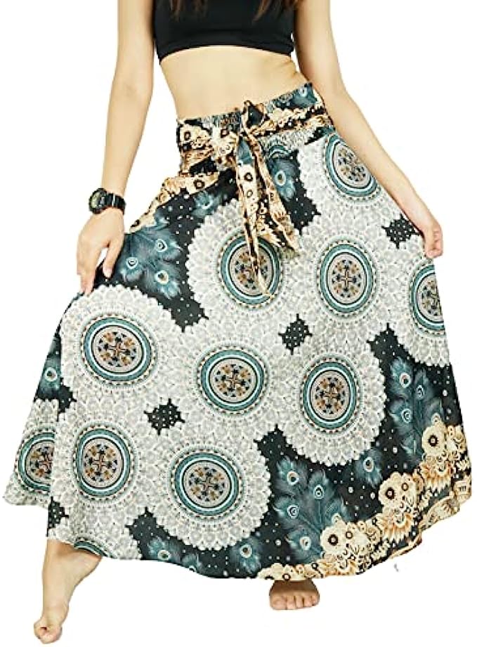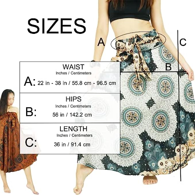 100% Rayon Imported Pull On closure Hand Wash Only Hand Wash Only : Rayon which is slightly thin. So Hand Wash Only with Cold Water. Some color may be bleed for first time washing so need to wash Separately. The flexible size of skirt dress. Will fit US women size S, M, L and XL. (US women size 0-16). Waist of skirt unstretched: 22 Inches. Waist stretched: 38 Inches. Hip: 56 Inches Length : 36 inches Bohemian Gypsy Hippie Long Skirt style with high waist elastic waist and lining. It is bright colors but not easy to fade. Also sweat absorption, quick dry, soft, smooth and skin-friendly. It is perfect for an outdoor day, on a festival, holiday or just a casual diner.