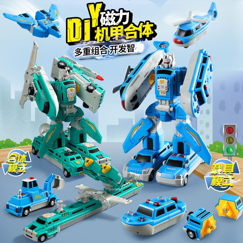 Qiya Children's Magnetic Building Blocks Splicing Boys Magnetic Assembling Transformer Fit Transformer Diamond Robot Toy
