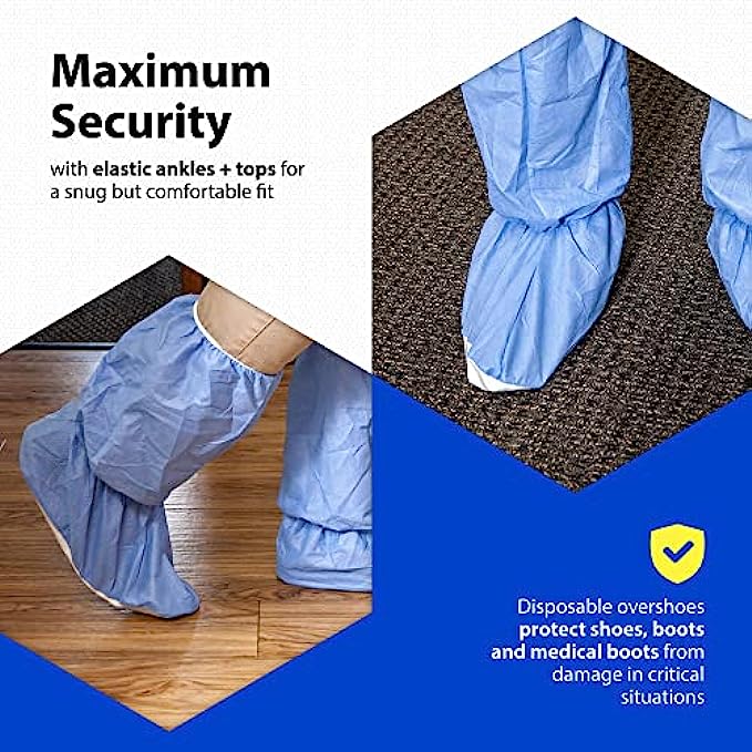 Disposable overshoes protect shoes, boots and medical boots from damage in critical situations. Available in Small, Medium, Large, and XL sizes
