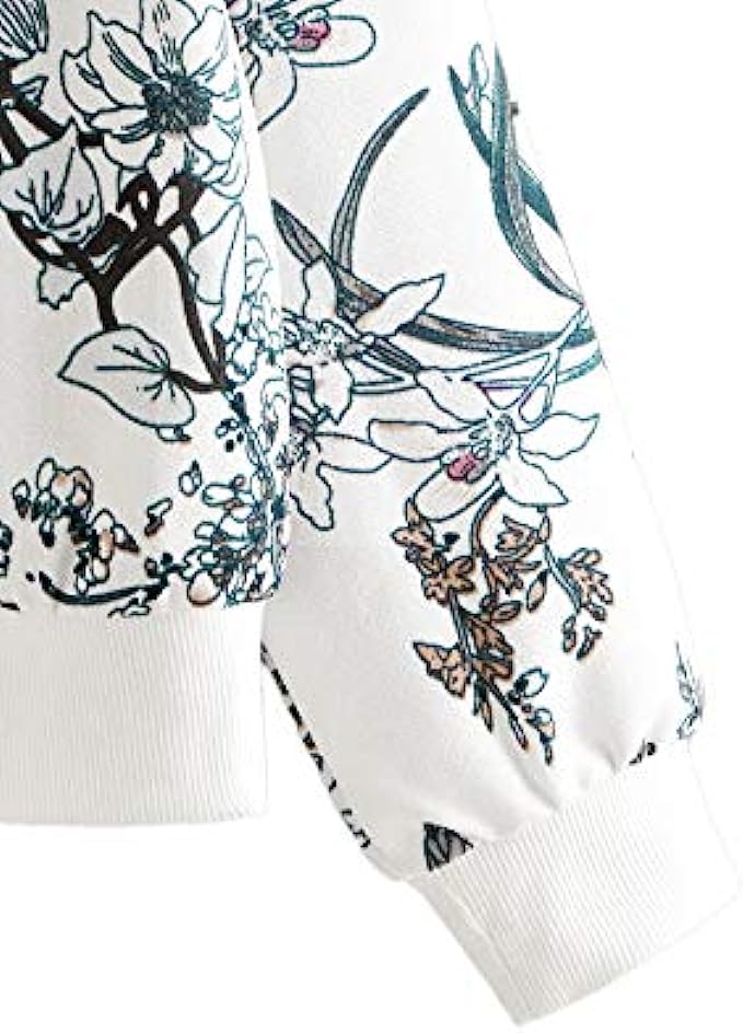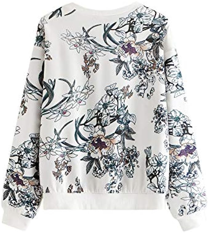 Romwe Women's Casual Floral Print Long Sleeve Lightweight Sweatshirt Pullover