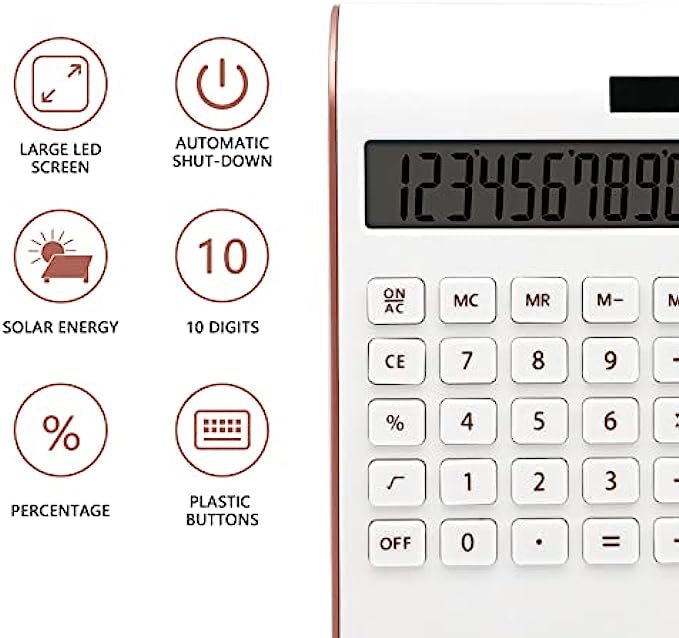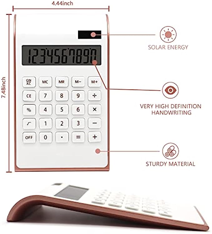 Elegant and Slim Design: The rose gold office supplies and accessories desktop calculator has a sleek and stylish design, good-sized buttons, Large 10-digit LCD display, Pretty big one but still very light weight. Your calculation process will be faster and smoother with this calculator’s responsive buttons.
