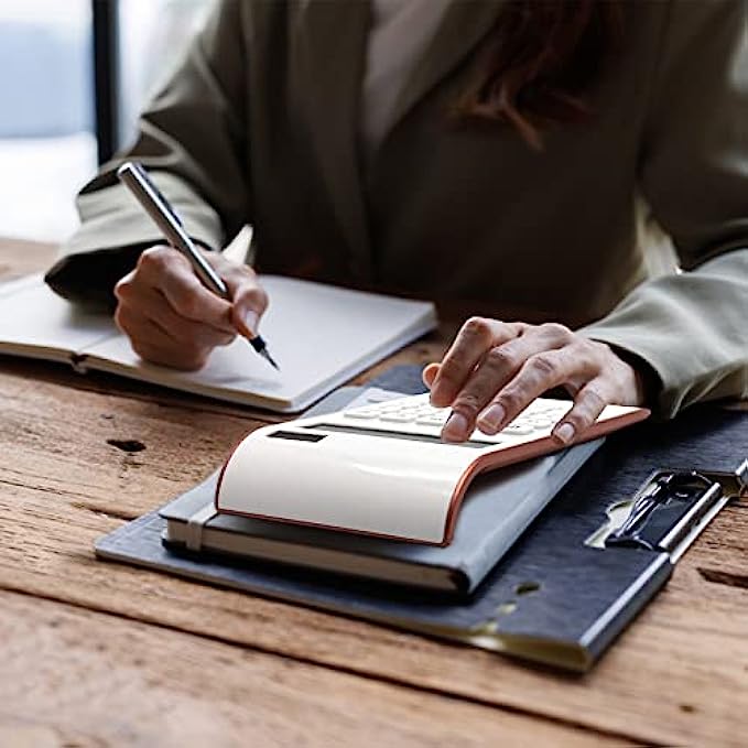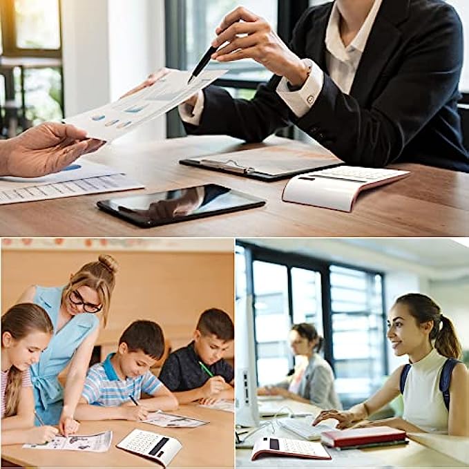 Quality & Appearance- Calculator large display for women is made of durable ABS to ensure normal daily use; The Elegant and slim design and reasonable button layout make it beautiful and practical, perfect size, fits right on the desk and does all you need in a tight spot.