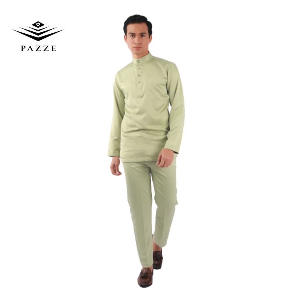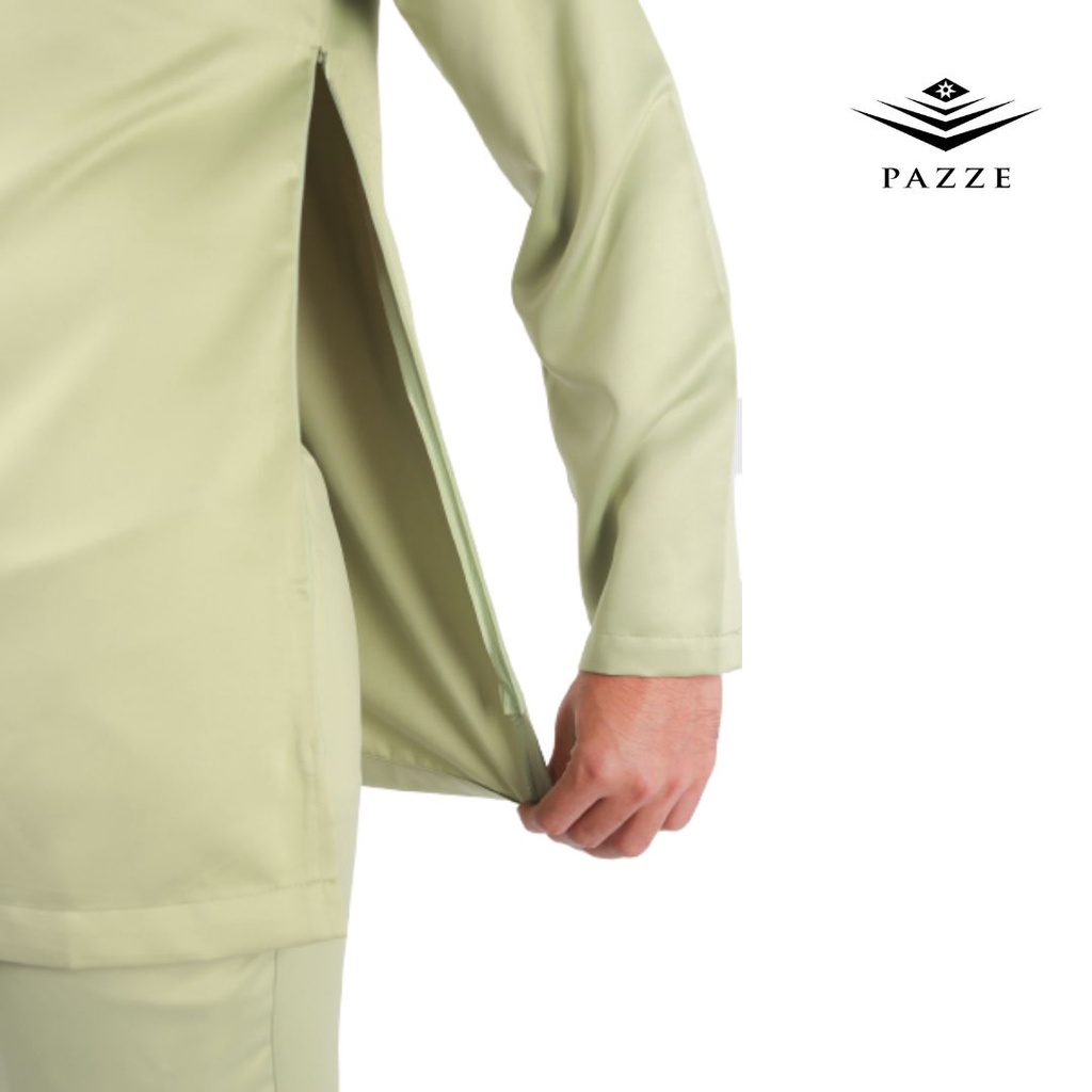 SAGE GREEN BAJU MELAYU SLIM FIT SATIN MATTE | SET TUNANG NIKAH DUAL ZIP | XS > 2XL
