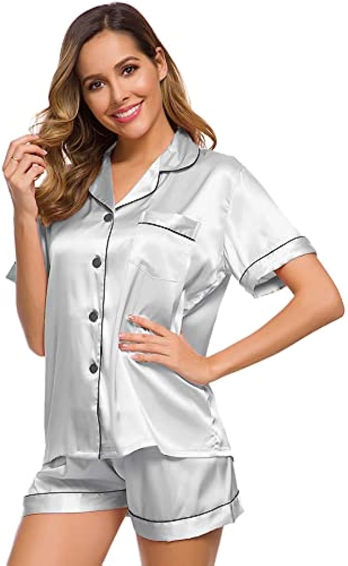 • Occasion:Women's Short Sleeve Silk Satin Pajamas Set, which is suitable for daily wearing and easy to match.Comfortable and suitable for lounging and sleeping,pajama party,girls day,bridal sleepwear,indoor, living room, bedroom, hotel, vocation, travel, and daily sleepwear.