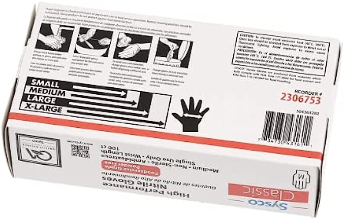 SYSCO(R) High Performance Nitrile Gloves 100 Count (Pack of 1) (Size Medium), Blue, (2306753)