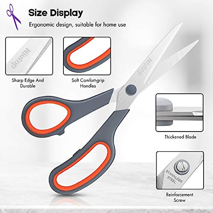 Multi-purpose Scissors: Niutop sturdy and super sharp scissors, Great for cutting burlap, cutting paper, photos, cardboard, light line, leather, fabric and other materials, Perfect for sewing, tailoring, quilting, dressmaking, cutting patterns, alterations, hand craft.comfortable to use in office, craft room, in the study, school, kitchen, household or other occasions.