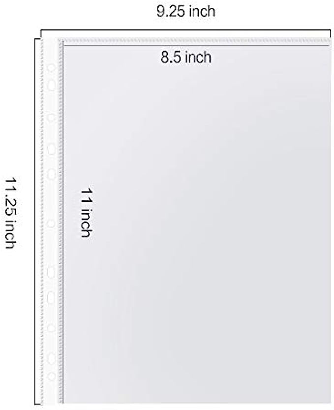 500 PACK SHEET PROTECTORS: PANDRI polypropylene sheet protectors are perfect for standard letter sized paper, our top loading 9.25" x 11.25" sheet protectors with 11 holes fit 8.5 x 11 paper and will keep your standard letter sized papers safe in most binders or folders. Our safe swing ring sheet protectors for 3 ring binders can hold up to 10-20 sheets depending on thickness.