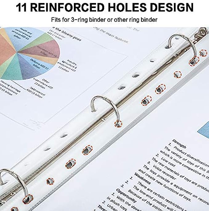 TOP LOADING DESIGN: The wide top-loaded binder sleeves opening makes inserting easy, and the various pre-punched holes allow our clear binder sleeves to be used with file, photo, or recipe binders.