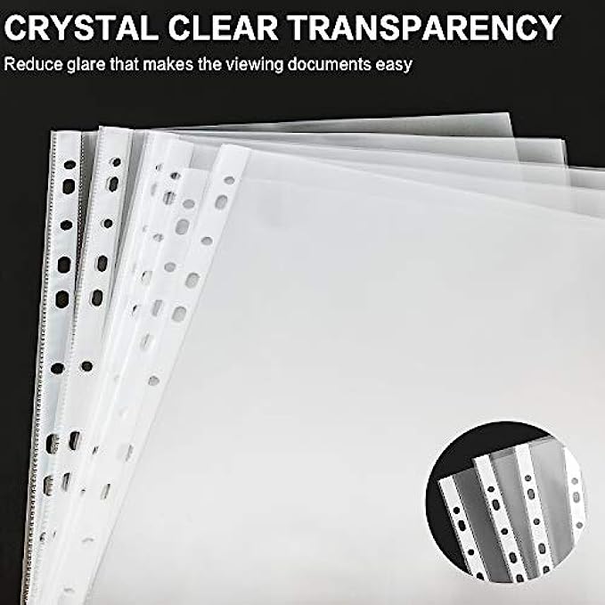 CRYSTAL CLEAR TRANSPARENCY: Crystal clear finish provides reduced glare that makes the viewing archiving documents, copy papers, photo papers, records, recipes, reference materials, business documents, and photographs super easy.