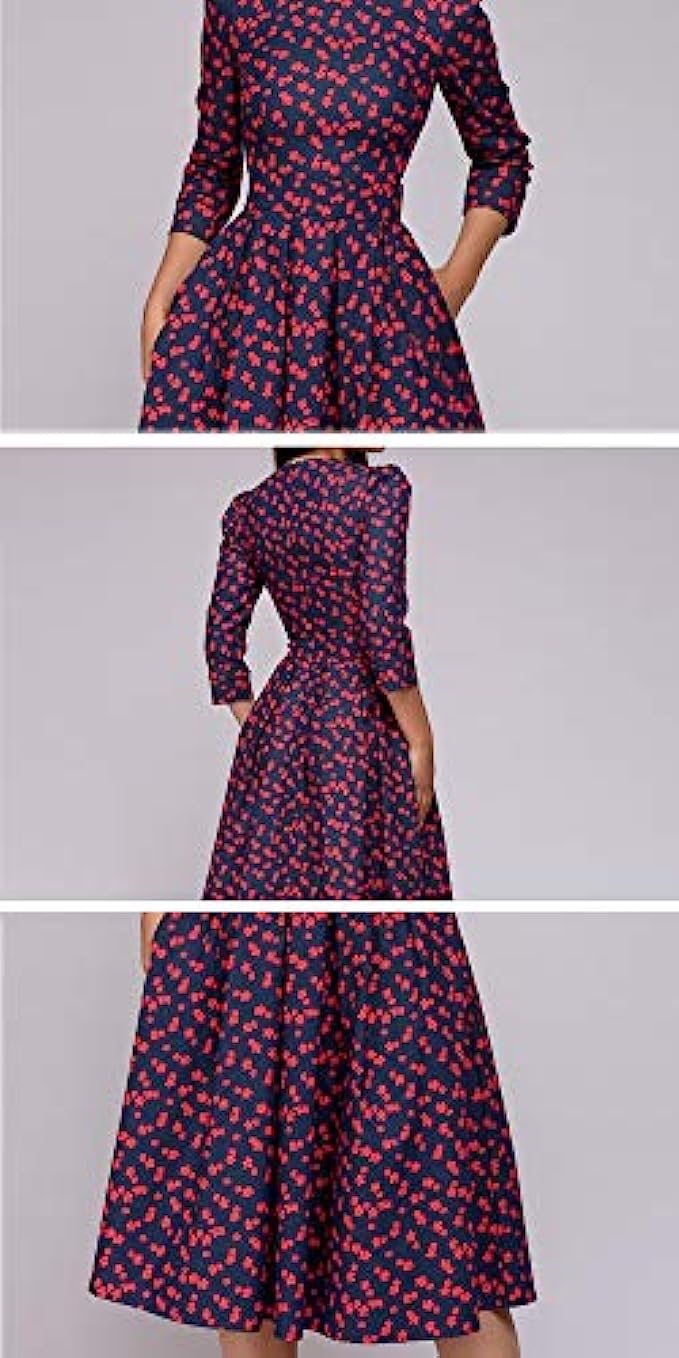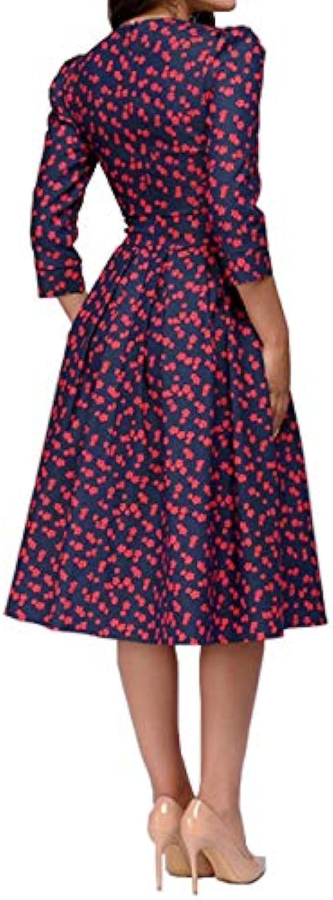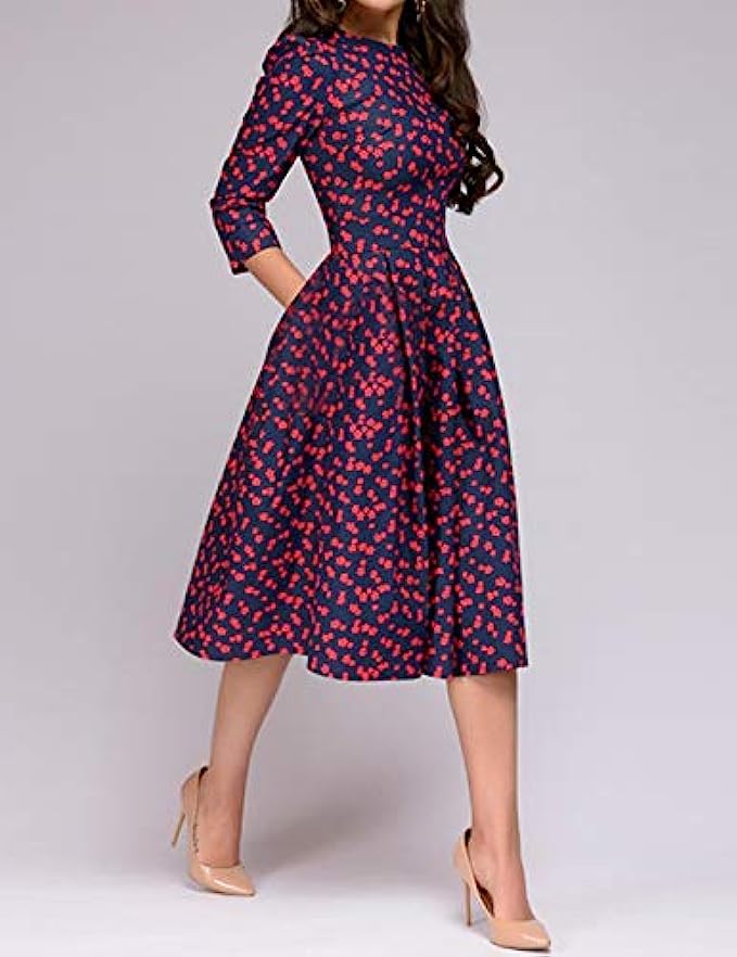 Simple Flavor Women's Floral Vintage Dress Elegant Midi Evening Dress 3/4 Sleeves